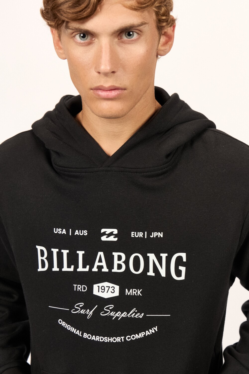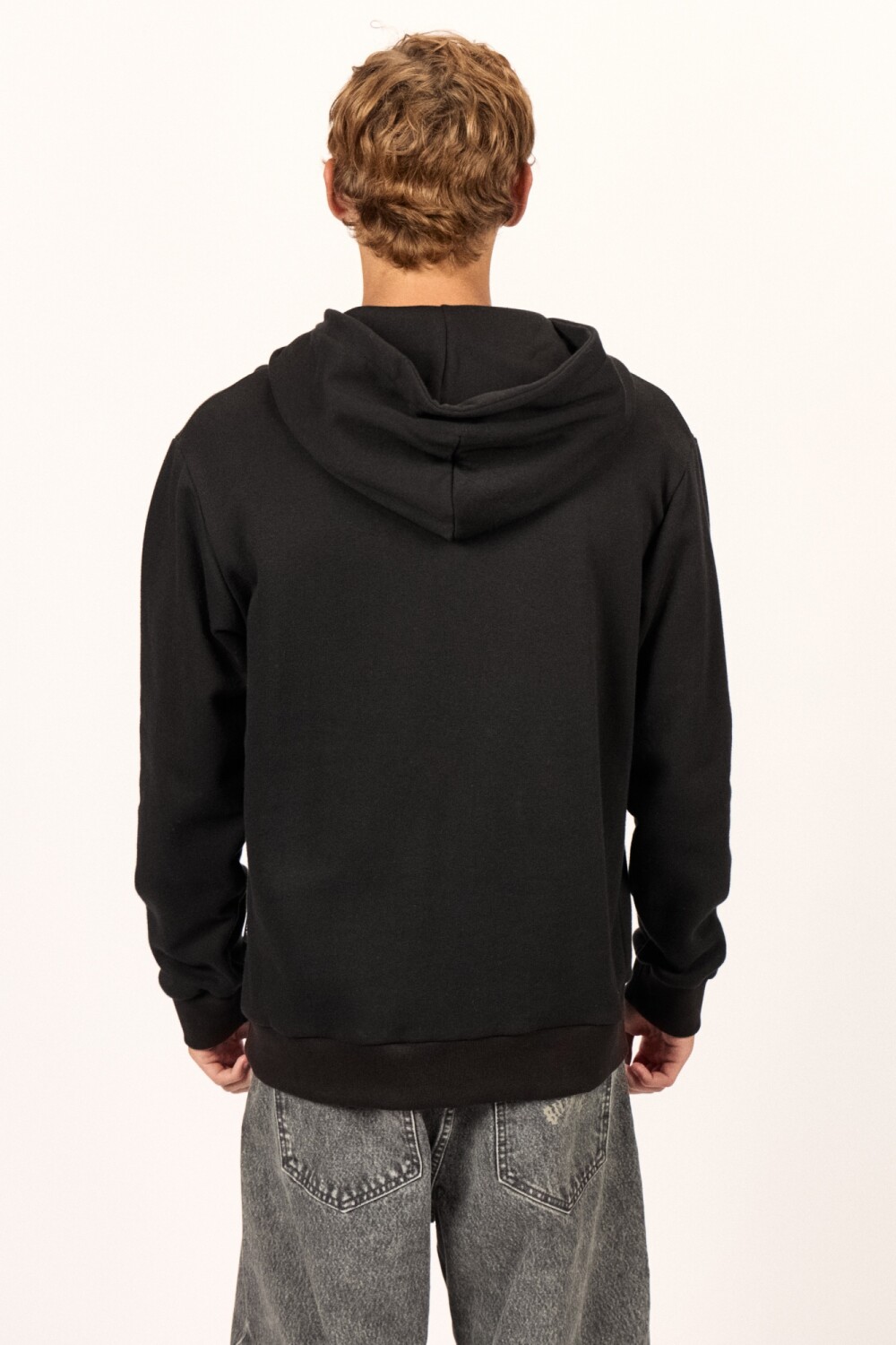 $ 2.117 Buzo básico calce standard con capucha y bolsillo canguro. Posee estampa de marca en frente,