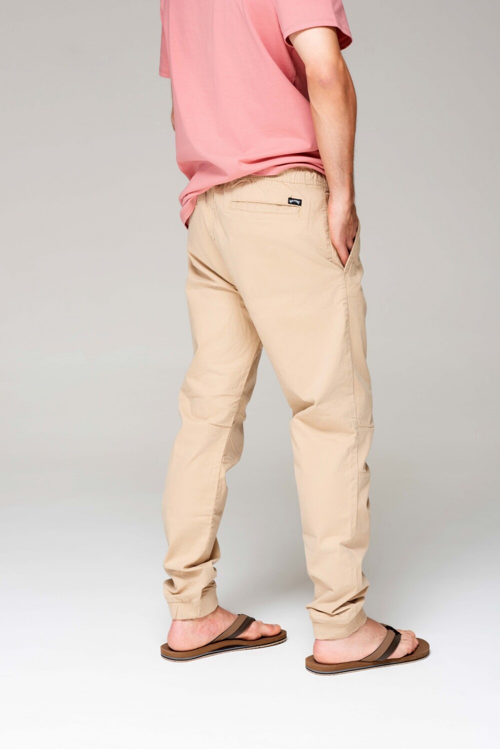 Pantalón jogger de gabardina.Tiro medio, tiene cintura y puños con elástico.