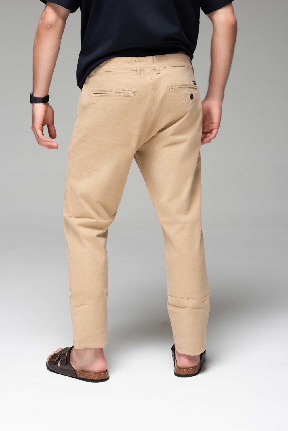 $ 2.372 Pantalón chino de gabardina, tiro medio, tiene bolsillos con vivo en la espalda.