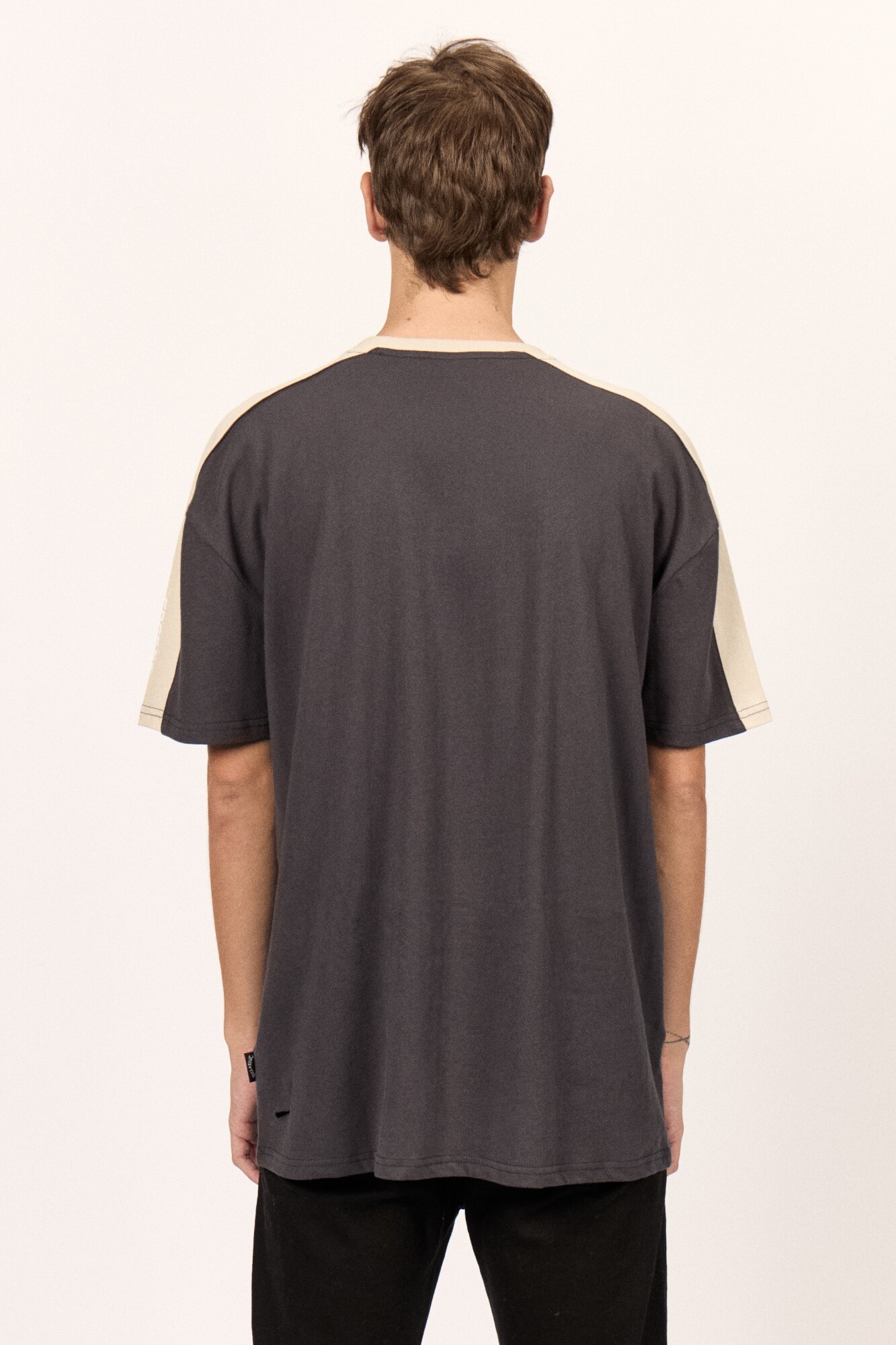 $ 1.437 Remera de jersey standard con recorte en hombro, mangas y cuello a