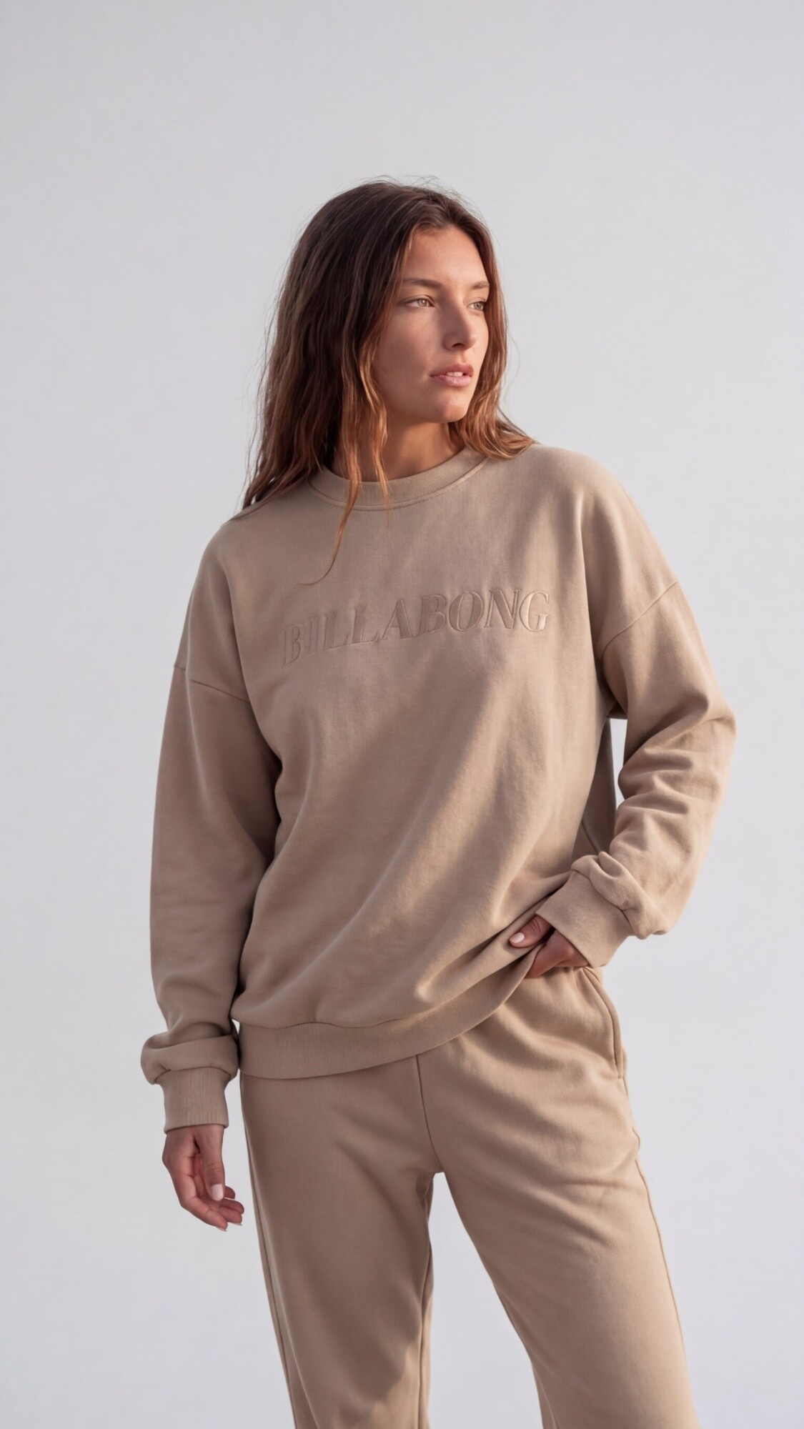 $ 1.947 Buzo oversize liviano de rústico, manga ballon. Posee bordado a tono en el frente y grifa plaqué de marca en la espalda.